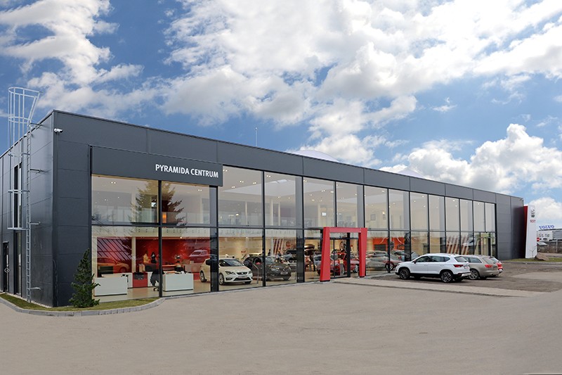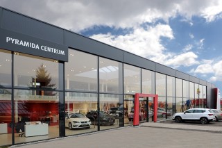 Navrhli jsme montovanou ocelovou halu, která kombinuje funkčnost autosalonu s výstavním prostorem.