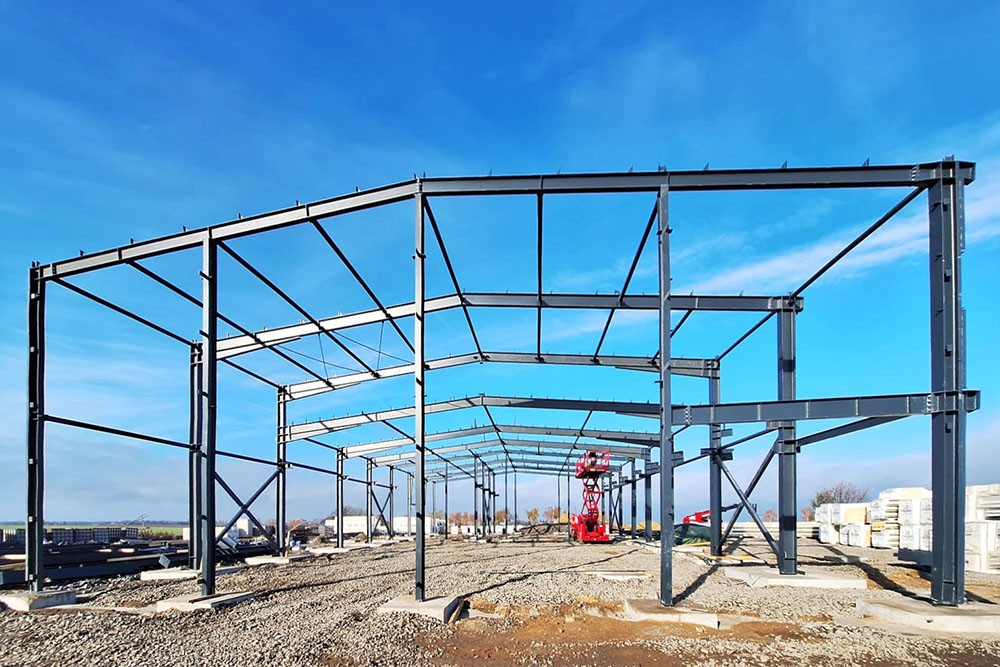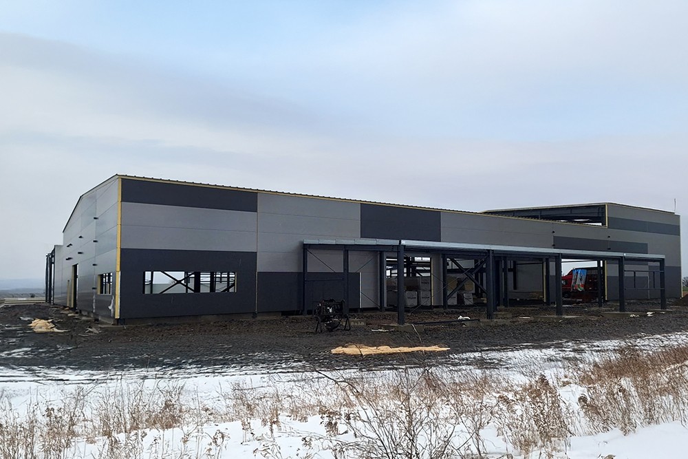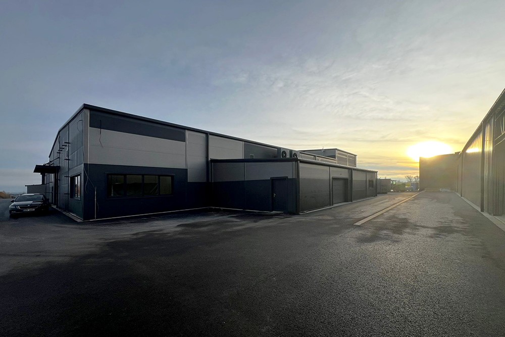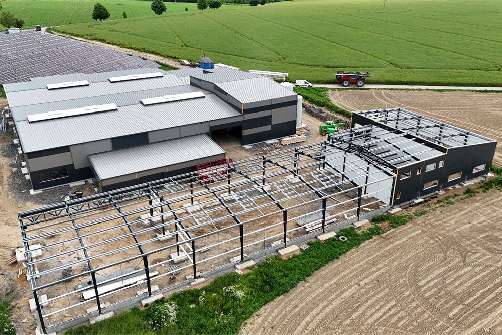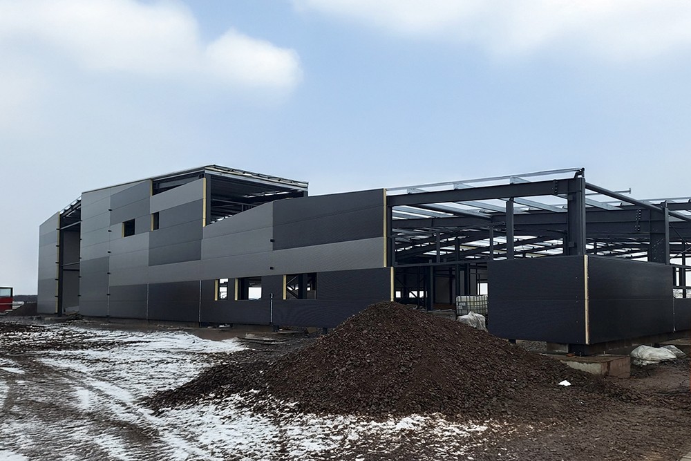 Hlavní výrobní hala je navržena jako dvoulodní rámová konstrukce se sedlovou střechou (sklon 5°).