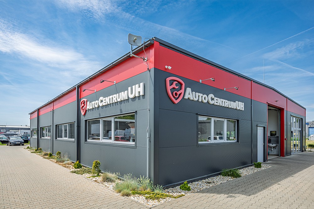 Montovaný autoservis Auto-Centrum UH – praktická ocelová hala pro opravy vozidel