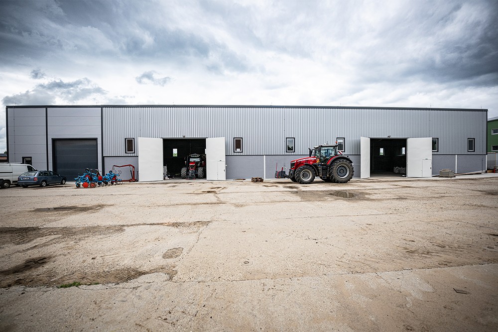 Zemědělská hala kombinující sklad a dílnu